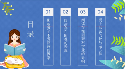 吴老师当天主要是从影响孩子不爱阅读的因素、阅读存在困难的表现及对学业的影响、尤其是提升孩子爱上阅读的技巧与方法几个方面来分享。